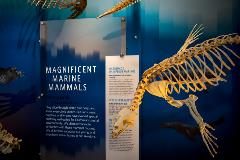 - Overhead in the exhibit, visitors can take in the enormity of a massive blue whale skeleton and explore more than a dozen articulated marine mammal specimens and skulls, including dolphins, whales, seals, sea lions, and more to learn how marine mammals have evolved over time to glide through water, dive deep, and haul out on shore.