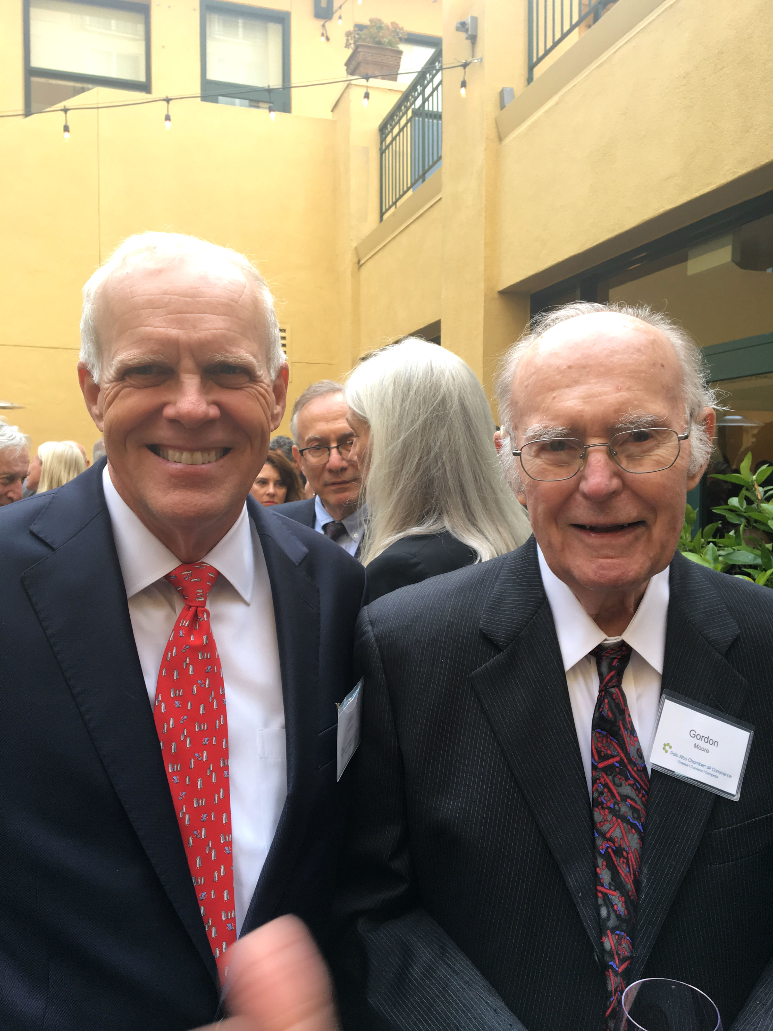 The Palo Alto Chamber of Commerce honored Gordon and Betty Moore with their 2017 Tall Tree Global Impact Award. Foundation trustee and 2013 award recipient, John Hennessy, was on hand to present the award on May 16, 2017. His remarks honoring Gordon and Betty follow.